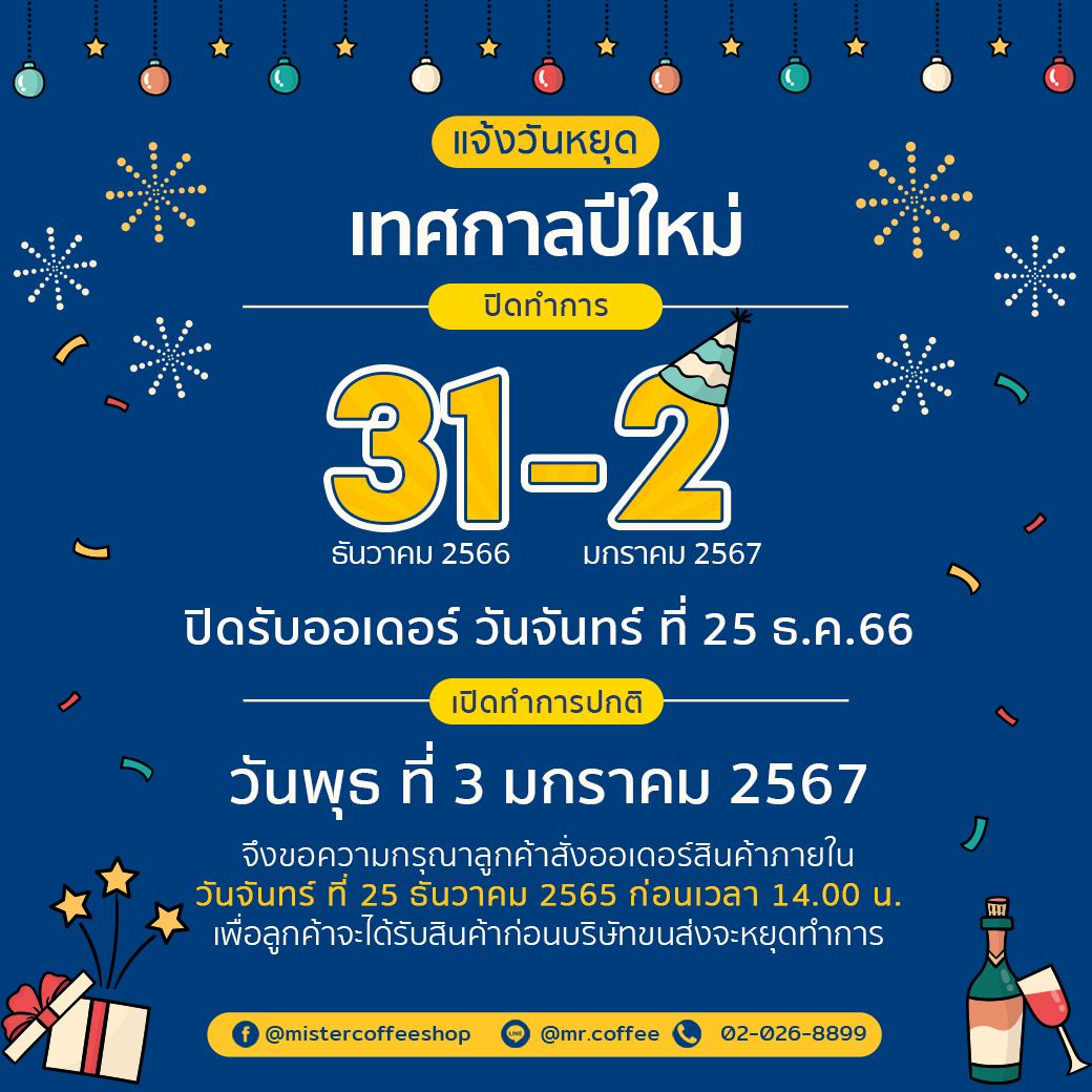 ทางบริษัทปิดทำการในวันที่ 31 ธันวาคม 2566 - 2 มกราคม 2567