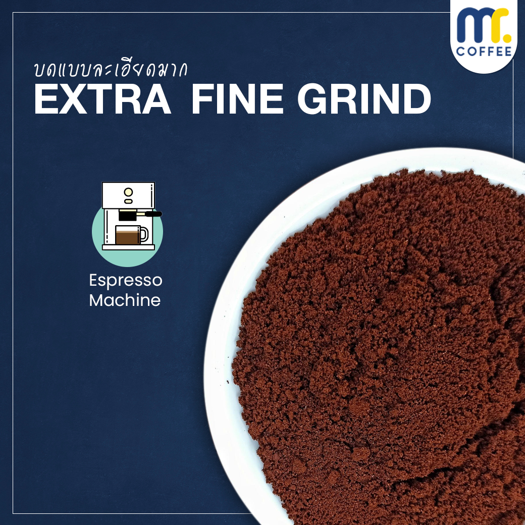 เป็นระดับการบดที่มีขนาดเล็กกว่าน้ำตาลทรายขาว เกือบเหมือนแป้งแต่ยัง รู้สึกถึงเนื้อสัมผัสที่เป็นเอกลักษณ์ของกาแฟ จึงเหมาะสำหรับการชงแบบเอสเพรสโซ (Espresso) หรือเครื่องชงกาแฟที่ร้านกาแฟเลือกใช้กัน เพราะเป็นการสกัดอย่างรวดเร็ว โดยใช้แรงดันและความร้อนสูง เพื่อให้ได้กาแฟที่เข้มข้น และเป็นการใช้ปริมาณน้ำในการชงน้อยกว่าการชงแบบต่าง ๆ จึงต้องใช้ผงกาแฟที่มีความละเอียดมากเพื่อให้น้ำผ่านกาแฟได้มากที่สุด