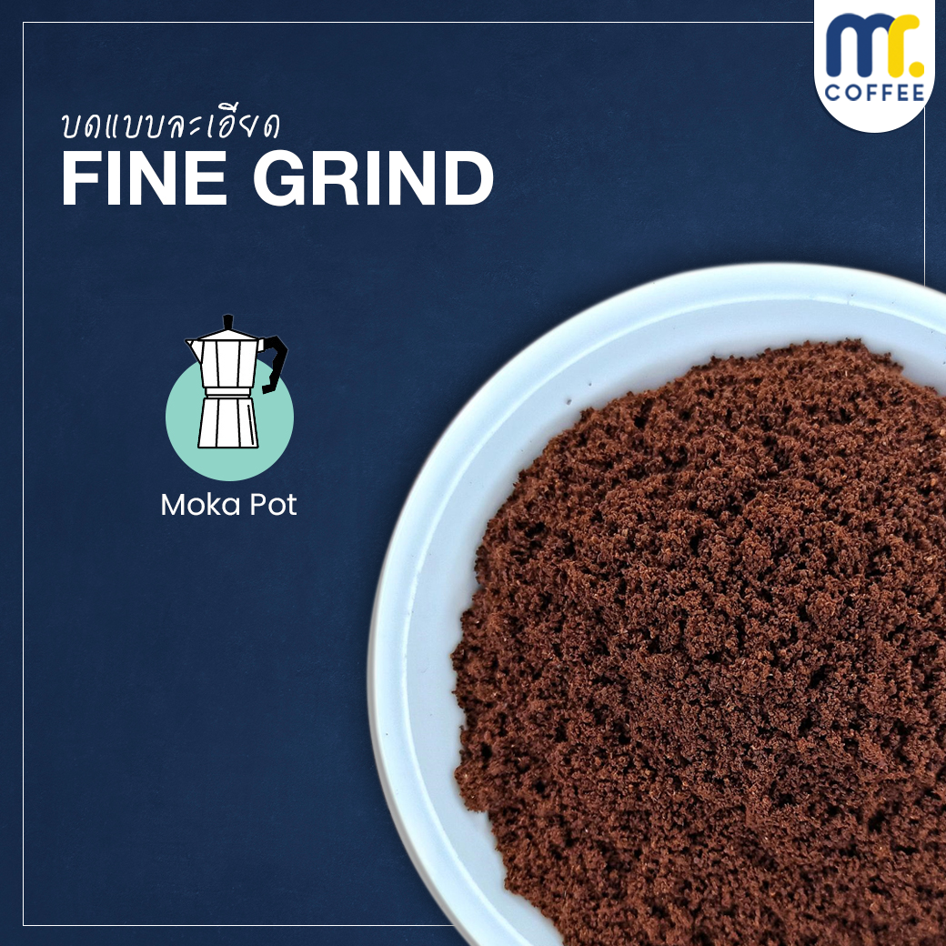 การบดระดับนี้จะให้ผงกาแฟมีลักษณะเริ่มป่น ไม่เป็นก้อน จับแล้วเหมือนเม็ดน้ำตาลทรายขาว ซึ่งจะยังให้รู้สึกถึงเนื้อสัมผัสของผงกาแฟ ซึ่งเหมาะสำหรับการชงแบบโมก้าพอท (Moka Pot) เป็นการชงที่มักจะให้รสชาติที่เข้มข้นและขม ผงกาแฟที่เหมาะกับการชงแบบนี้ผงกาแฟจะค่อนข้างละเอียดเหมือนเกลือ เพราะจะช่วยลดความขมของกาแฟได้ แต่หากชอบความเข้มมากก็สามารถปรับให้มีความละเอียดมากขึ้นได้ และนับว่าวิธีการชงแบบโมก้าพอทนี้ เริ่มถูกนำมาเป็นจุดขายของหลาย ๆ ร้านกาแฟเลยก็ว่าได้