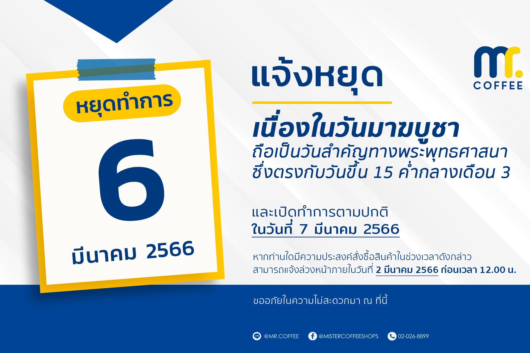ผ่านทาง Line : @mr.coffee หรือ โทร. 02-026-8899
